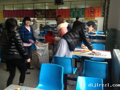 图一、国际商务系同学帮助清洁食堂卫生