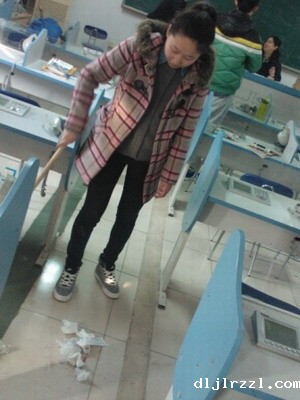 图二、外语系学生打扫实训室卫生